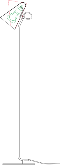 Kleine Stehleuchte mit handgefertigtem `Schirm´ aus blauem Überfangglas. Die Kabelführung erfolgt durch das Rohrgestell. Der drehbare Leuchtenkopf und die Gesamthöhe von nur 135 cm ermöglichen eine flexible Nutzung als Lese-, Tisch- oder Arbeitsplatz-Leuchte.