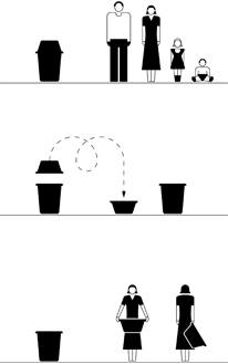 Deshalb ist Gibus nicht nur ein weiterer Wäschecontainer zur Aufbewahrung verschmutzter Wäsche sondern zugleich, dank des Deckels mit Grifflöchern, Wäschekorb zum Transport der Kleidung zur Waschmaschine, zum Wäschetrockner oder zur Wäscheleine.